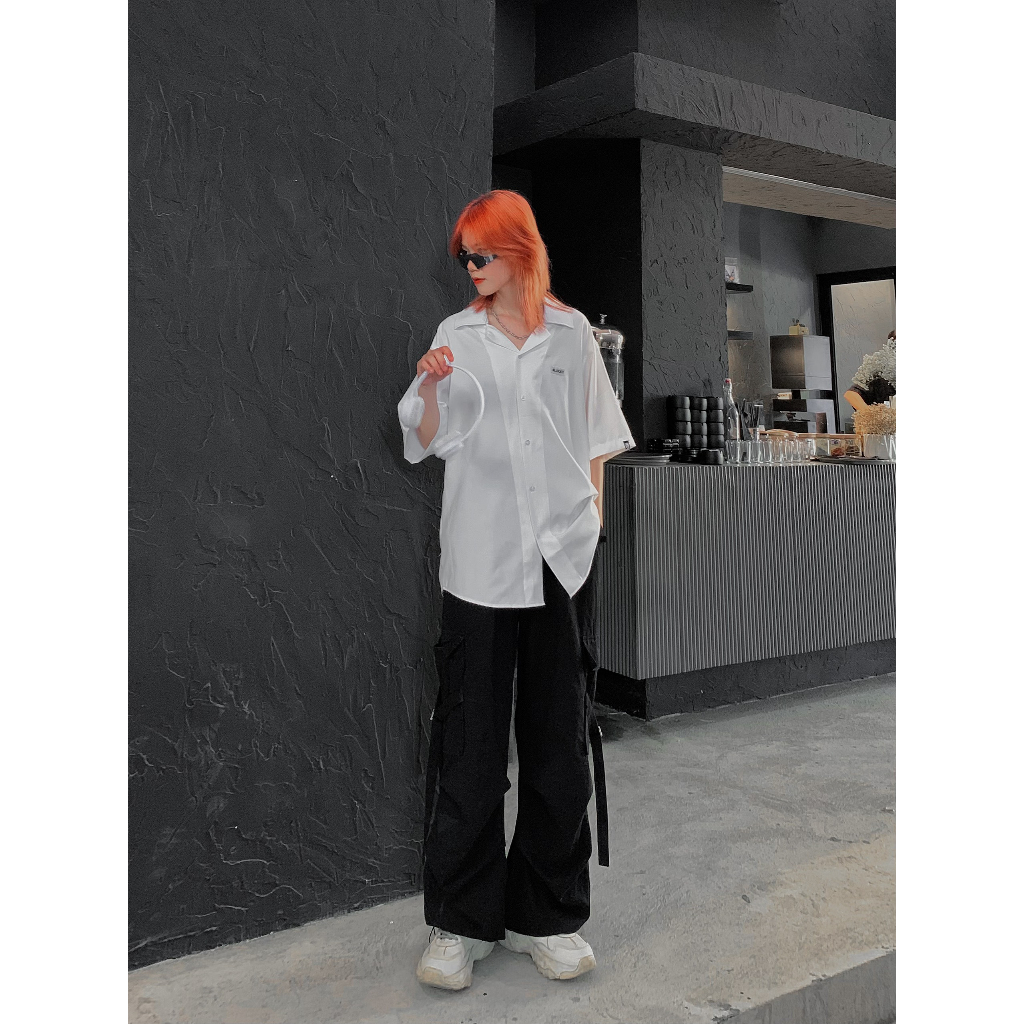 Áo sơ mi unisex cổ vest 16801 4Lucky - form rộng ngắn tay