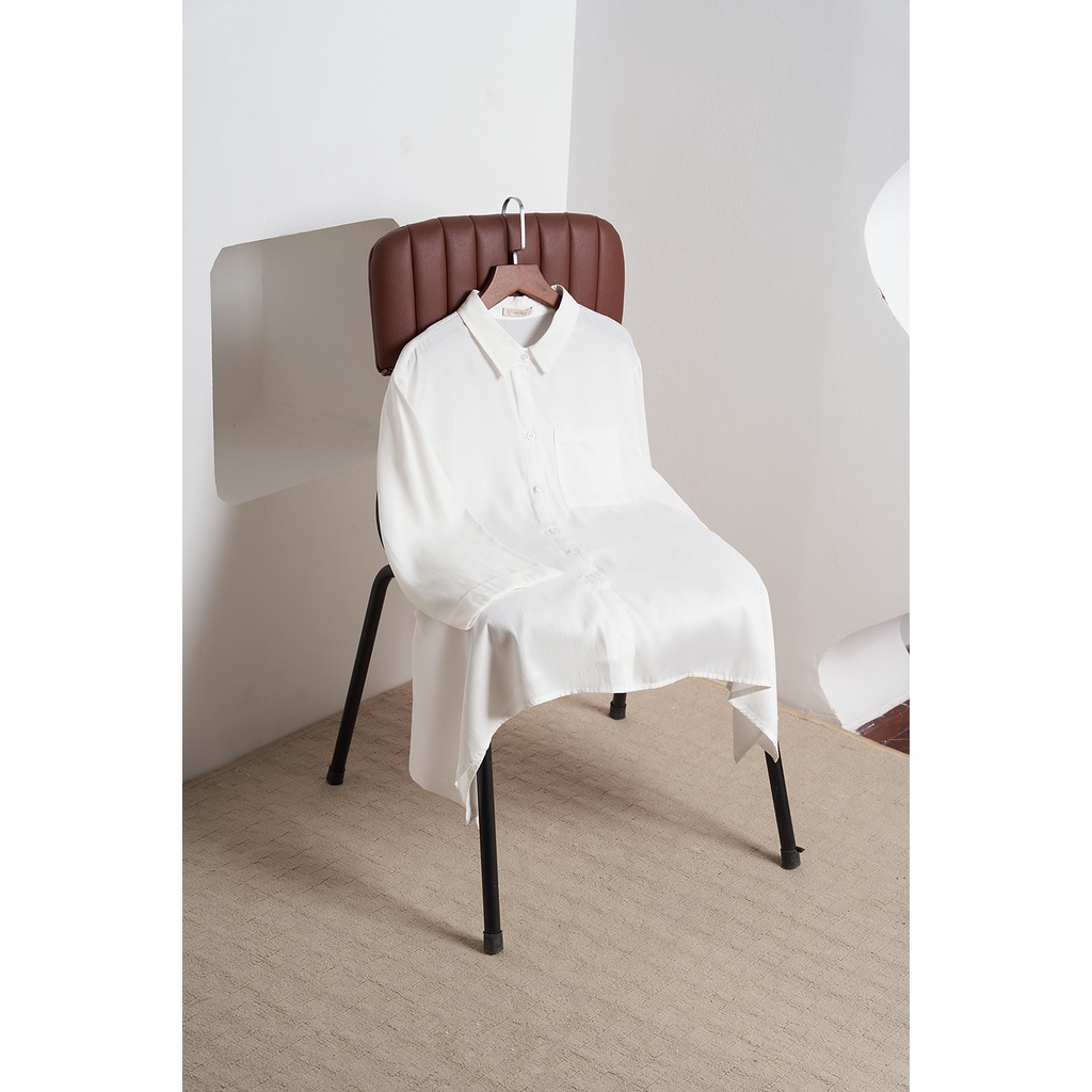 Áo Sơ Mi VIEN TRAN Cổ Đức Tay Lỡ V61H21Q019 Chất liệu : Một lớp lanh mịn Mô tả sản phẩm : Sơ mi cổ đức dáng rộng, free size, cài cúc thật, túi ốp ngực, gấu xòe Thông số sản phẩm : (Dài)*(Ngực)*(Vai)*(Eo) ● Free size : 62.5 x 102 x 42 x 106 ✨ Sản phẩm được thiết kế b
