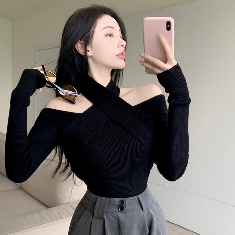 Áo Sweater Dệt Kim Tay Dài Cổ Đan Chéo Màu Sắc Ngọt Ngào Phong Cách Hàn Quốc Thời Trang Cho Nữ