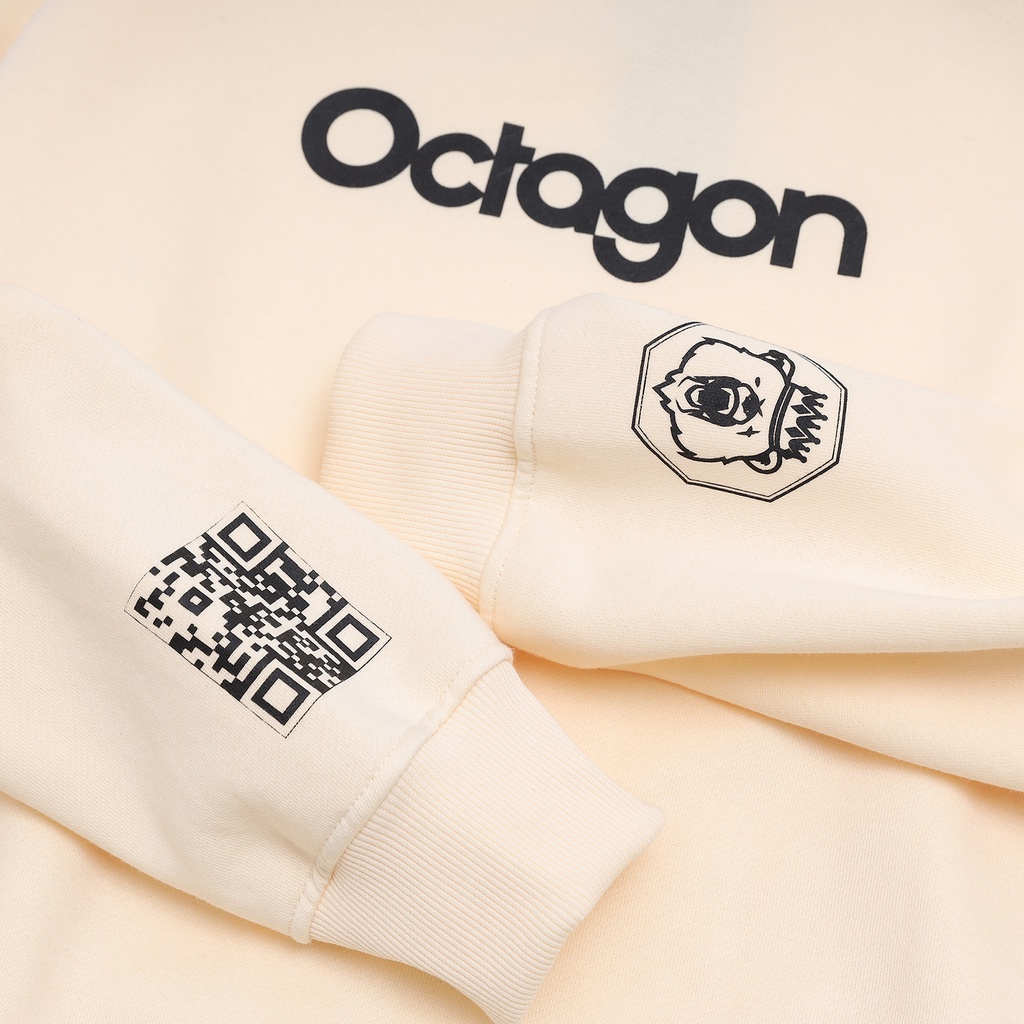 Áo Sweater Form Rộng OCTAGON ESSENTINAL Nỉ Bông Màu Kem