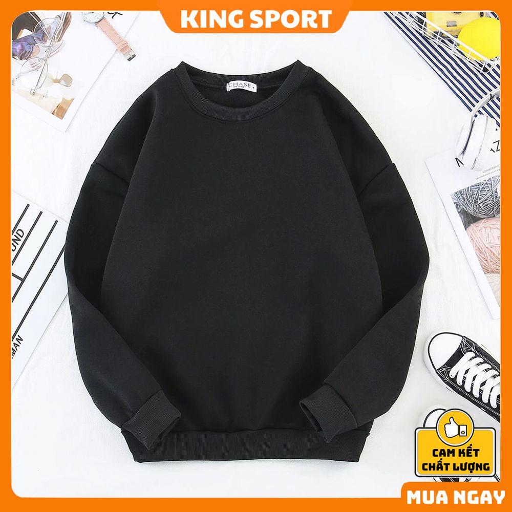 Áo sweater nỉ trơn nam nữ form rộng unisex hàn quốc KING SPORT Áo nỉ trơn cổ tròn dài tay lót nỉ ấm áp cao cấp