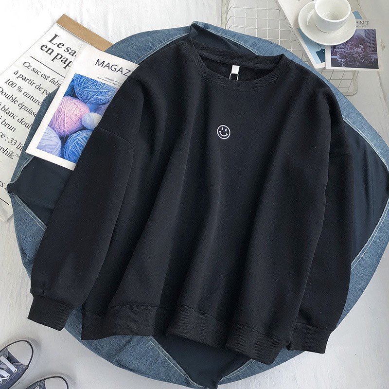 Áo Sweater Unisex - Áo Sweater From rộng dáng thụng Chất Liệu Nỉ Bông Hình Thêu Mặt Cười Tạo Điểm Nhấn