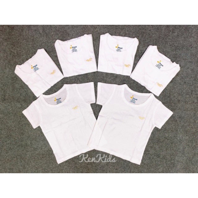 Áo Tay Ngắn Trắng Cho Bé Mặc Mát Thun 4 Chiều