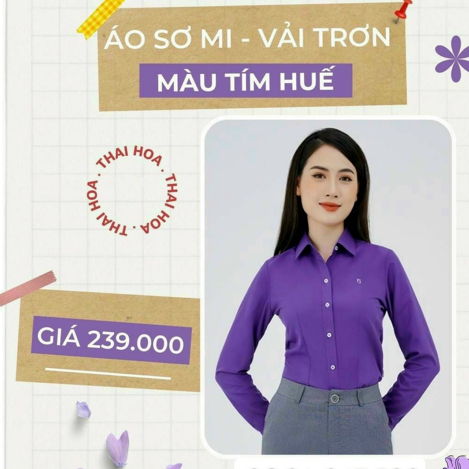 Áo Thái Hòa màu tím Huế vải mềm mát sang trọng 047-20-01