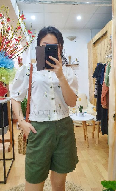 Mẫu áo do chính shop thiết kế và may Hoa thêu tỉ mỉ Có 3 phiên bản màu đen, tím, trắng Cách điệu phối nút khác màu Gợi ý bạn phối với quần cùng màu nút rất xinh nhé