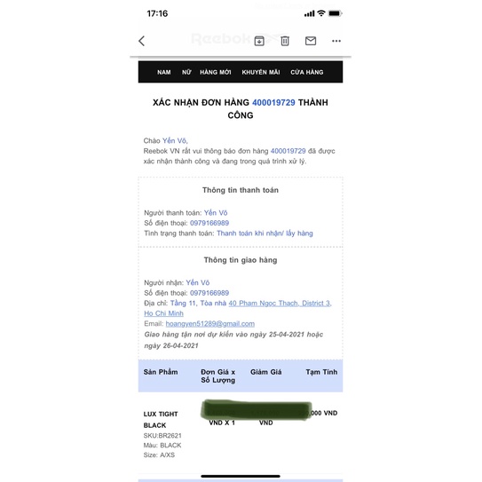 Áo thể thao Reebok hàng Auth, mua tại Reebok Việt Nam. New tag. Size XS.