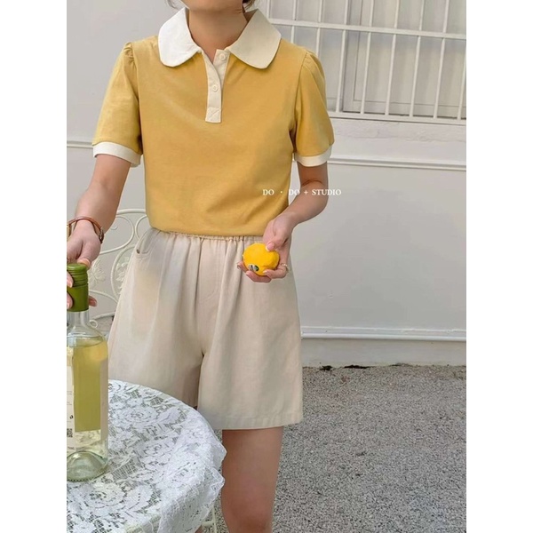 Áo thun cổ sen ngắn tay , Áo thun nữ Hàn Quốc