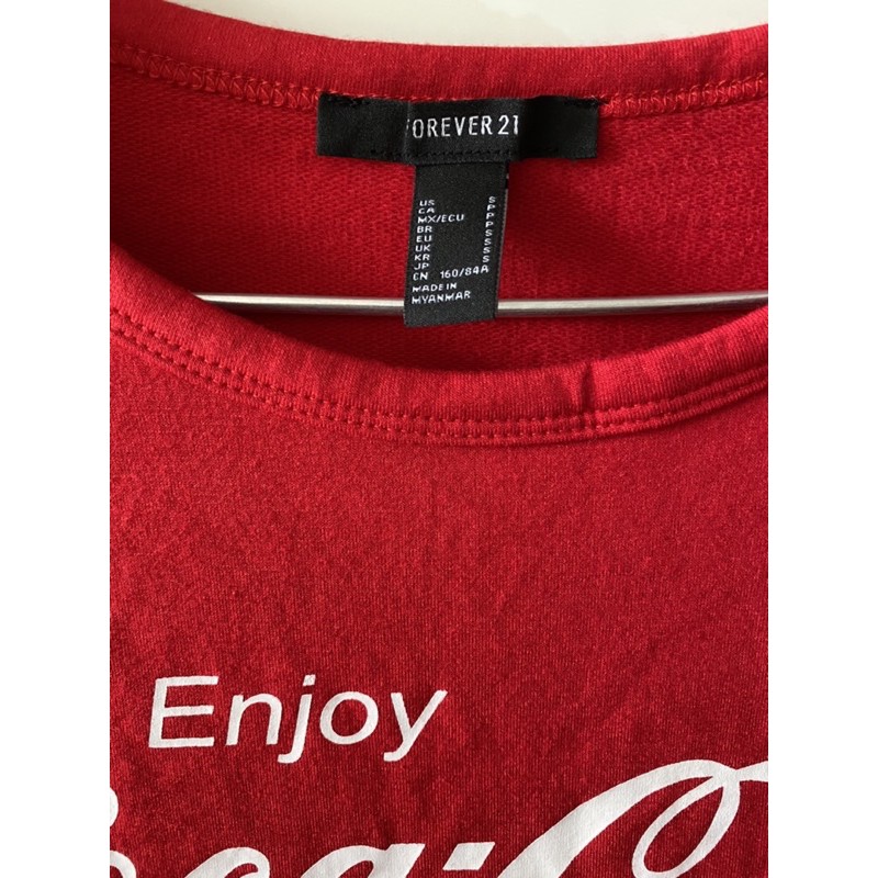 Áo thun croptop lửng nữ f21 tay dài vnxk cocacola đỏ nhũ