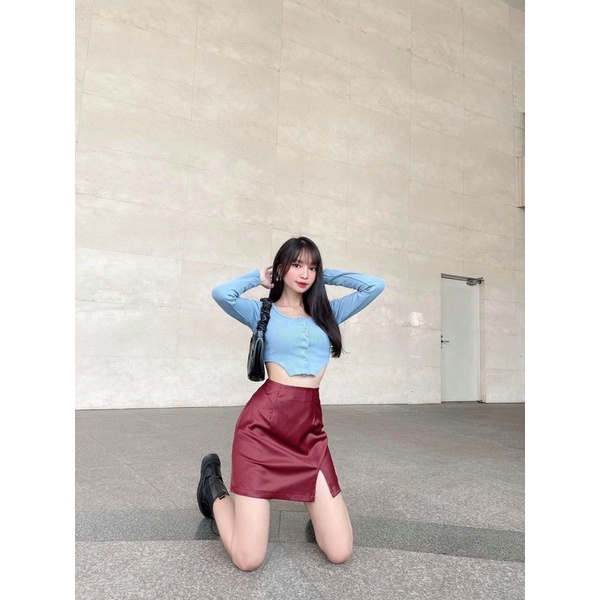 Áo Thun Gân Tay Dài Vạt Kiểu Croptop