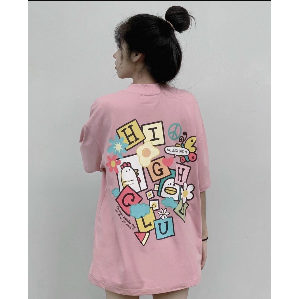 Áo Thun HighClub Ô Vuông Chữ Áo Thun Tay Lỡ Form Rộng Unisex 38-65kg Nam Nữ Phong Cách Ullzang