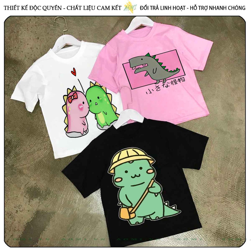 ÁO THUN KHỦNG LONG CUTE UNISEX PHÔNG NAM NỮ GIA ĐÌNH CẶP ĐÔI ĐEN TRẮNG HỒNG SIZE TRẺ EM CHO BÉ TRAI GÁI AOMIVN