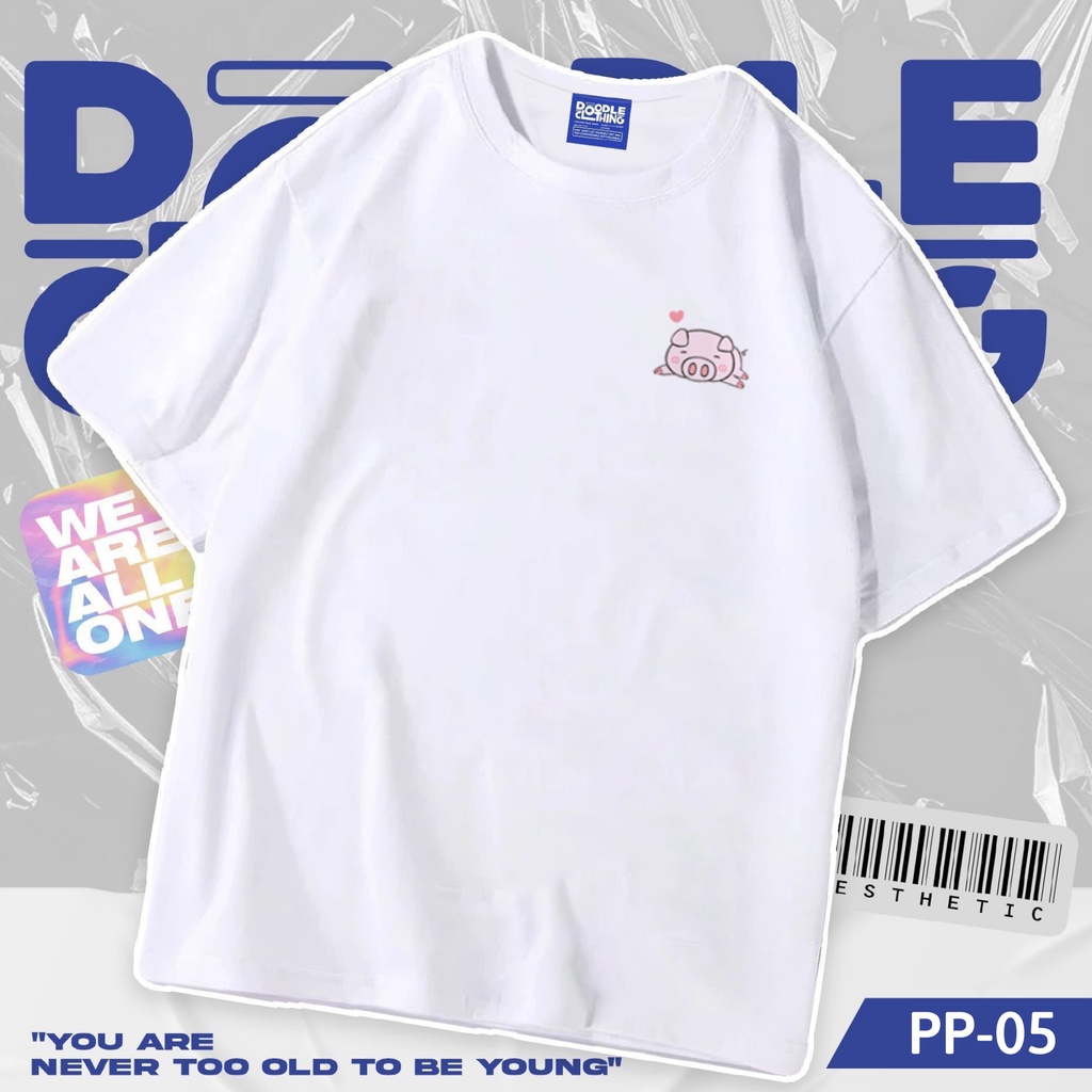 Áo thun nam nữ tay lỡ unisex oversize áo phông form rộng basic tee hình heo hồng nằm ngủ