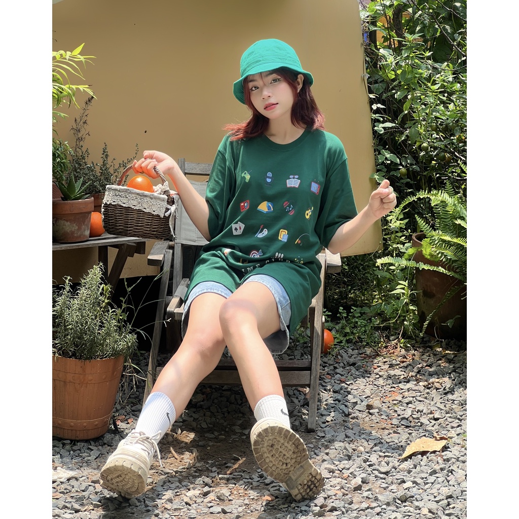 ÁO THUN NAM/NỮ UNIME MULTI ICON - XANH LÁ