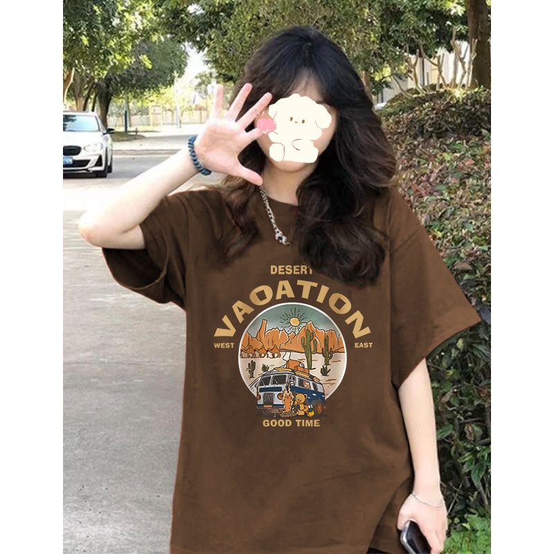 Áo thun NRVP 100% cotton tay ngắn dáng rộng in họa tiết phong cách Hàn Quốc thời trang cho nữ