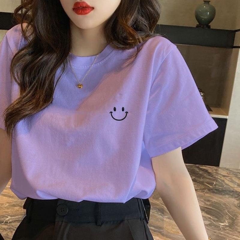 Áo Thun PHÔNG UNISEX IN DECAL MẶT CƯỜI HOT - Hình chụp thật