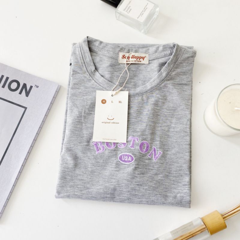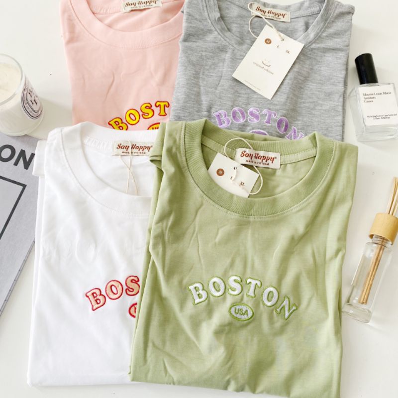 🍍Áo Thun Say Happy thêu BOSTON🍍