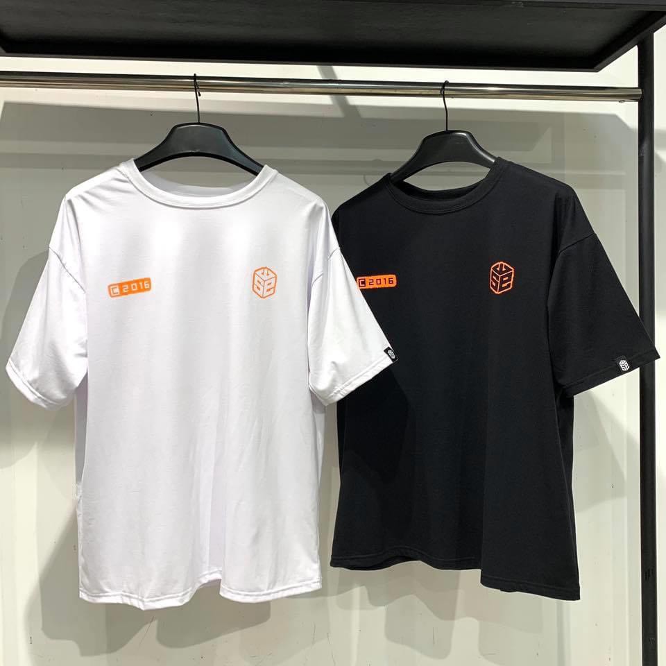Áo thun SWE LOGO Kim Tiến form rộng unisex tay lỡ hai màu trắng đen