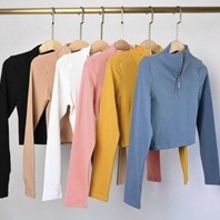 Áo thun tay dài cổ lọ dây kéo ôm body trơn basic LY45