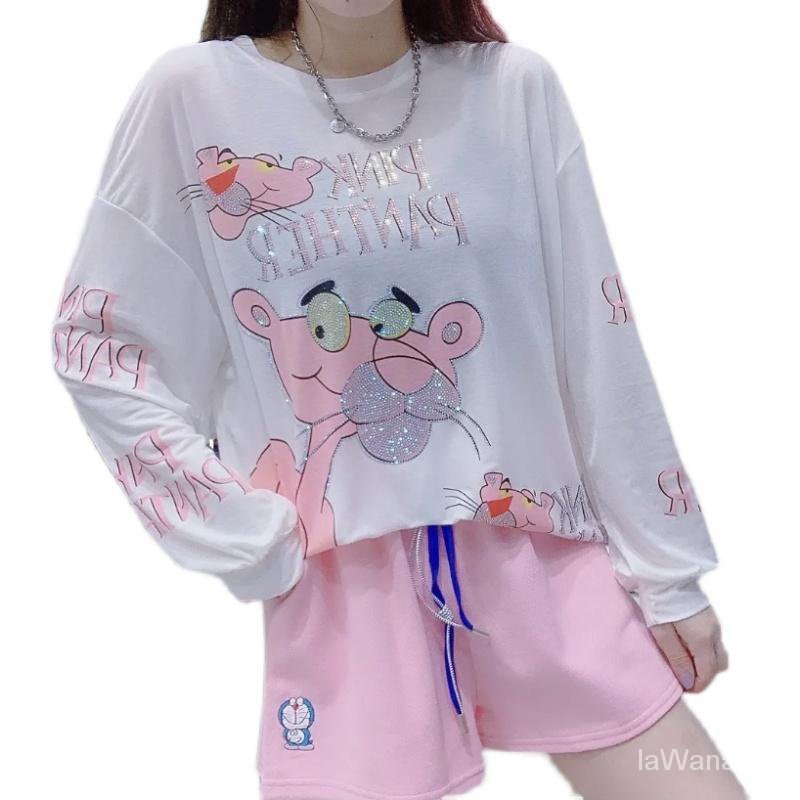 Áo thun tay dài thêu họa tiết chú báo hồng thời trang mùa hè cho nữ 2021