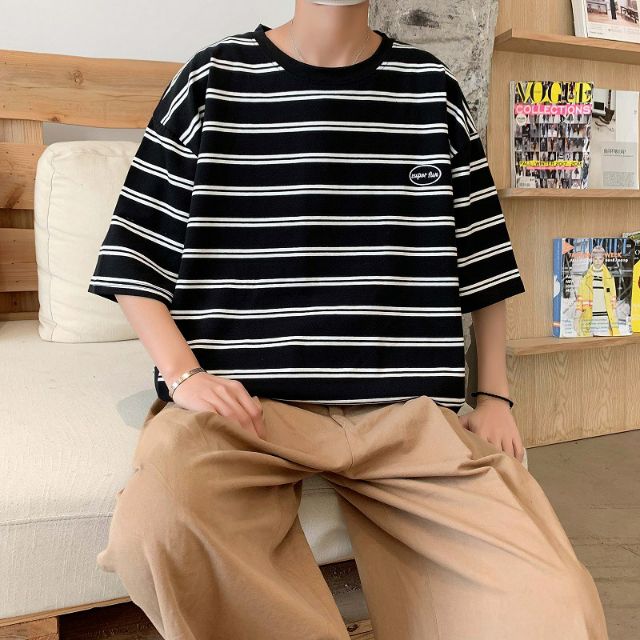 ÁO THUN TAY LỠ UNISEX NAM NỮ KẺ NGANG LOGO NGỰC