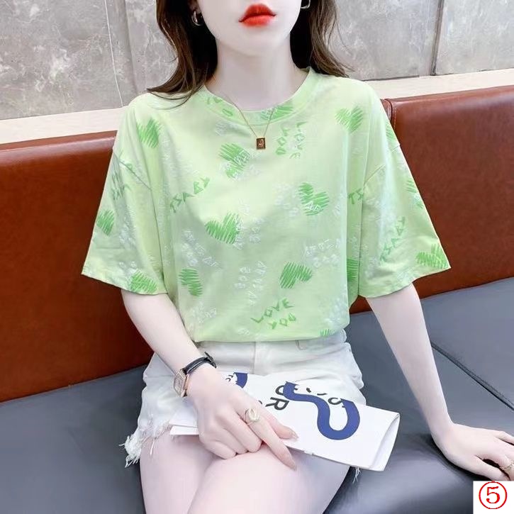 Áo Thun Tay Ngắn Cổ Tròn In Hình Trái Tim Phong Cách Hàn Quốc Thời Trang Mùa Hè 2023 Mới