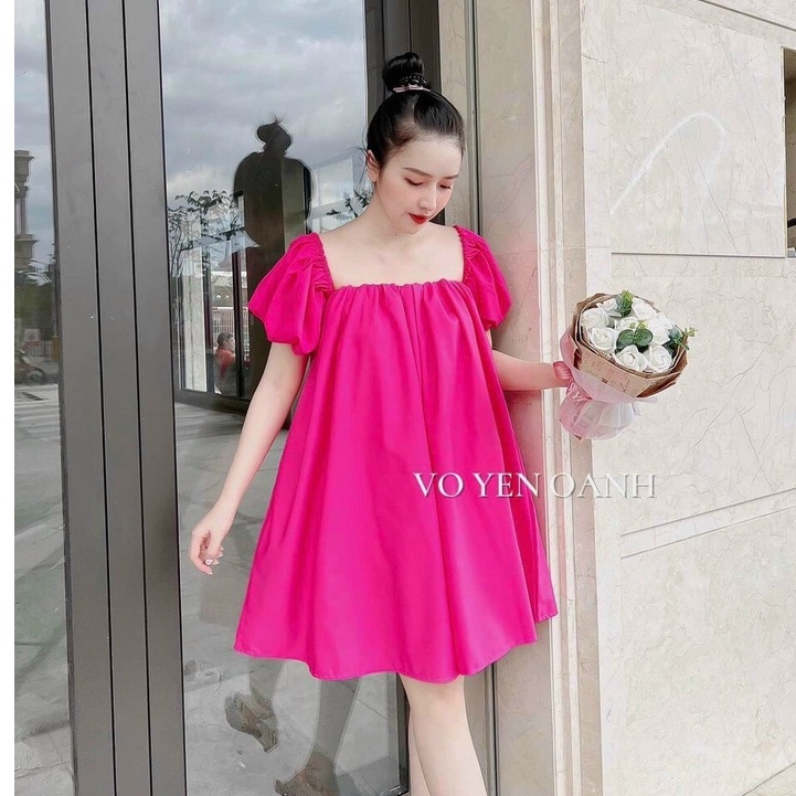 Áo trễ vai tay bồng xinh xắn đầm suông nữ dáng xòe nhiều màu LD546