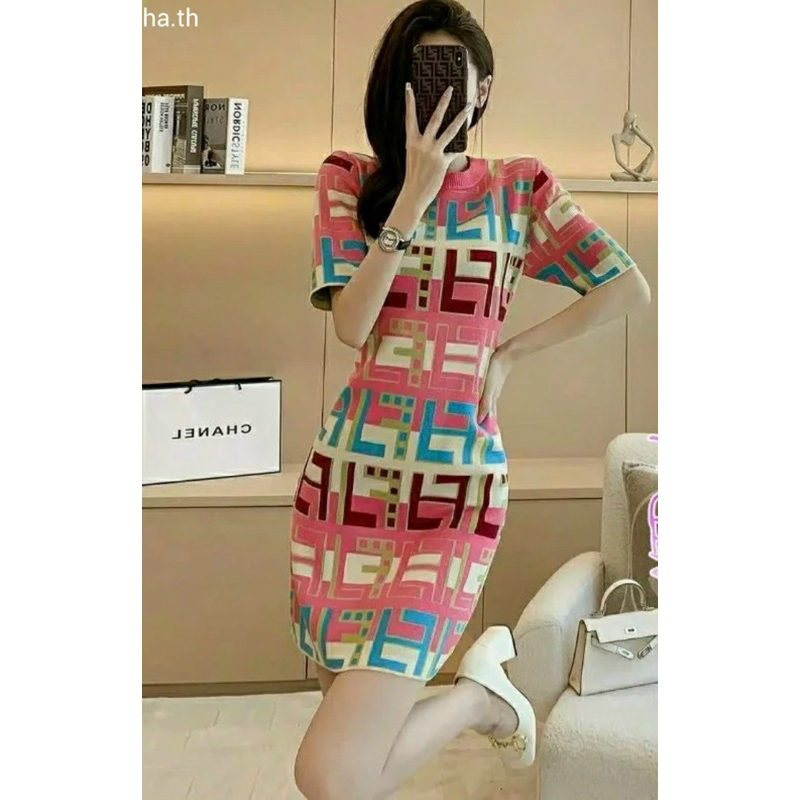Áo, váy len dệt kim hàng xuất dư hoạ tiết FD cộc tay A043
