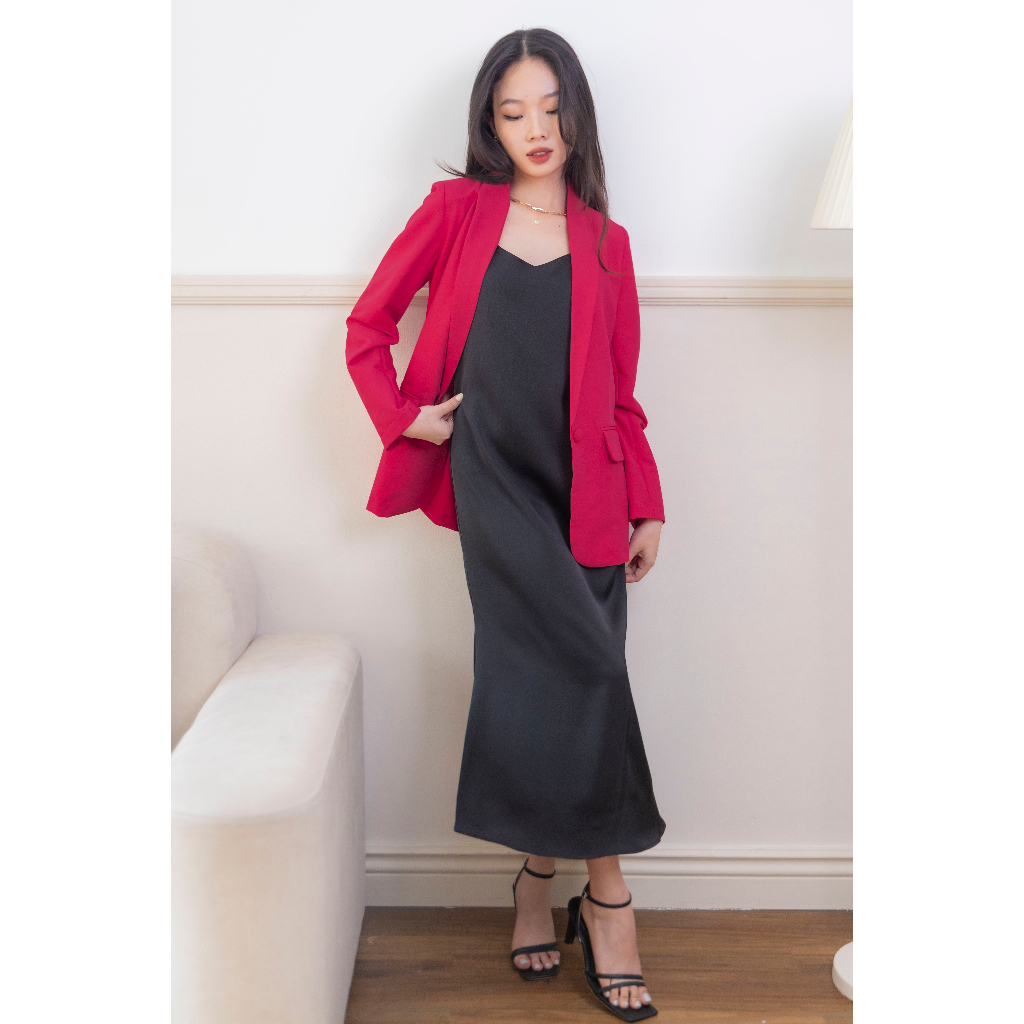 Áo vest blazer nữ KHÀN màu hồng đậm áo khoác công sở tay dài 1 lớp phong cách Hàn Quốc