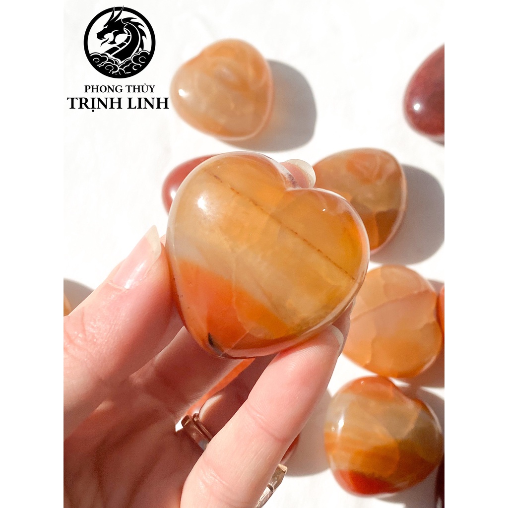 Đá hình trái tim M.não Carnelian vàng cam mang năng lượng tích cực