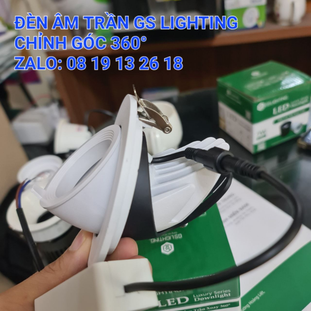 [Chính Hãng] Đèn âm trần xoay góc 360 độ GS Lighting, soi tranh, chiếu điểm, chỉnh góc, mã GSAT360, bảo hành 2năm - Chip led COB Shenzen cao cấp - Chất lượng ánh sáng cao CRI90, bảo vệ mắt, cho ánh sáng đẹp - Chất liệu vỏ hợp kim nhôm, bền bỉ, tản nhiệt nhanh - Thiết
