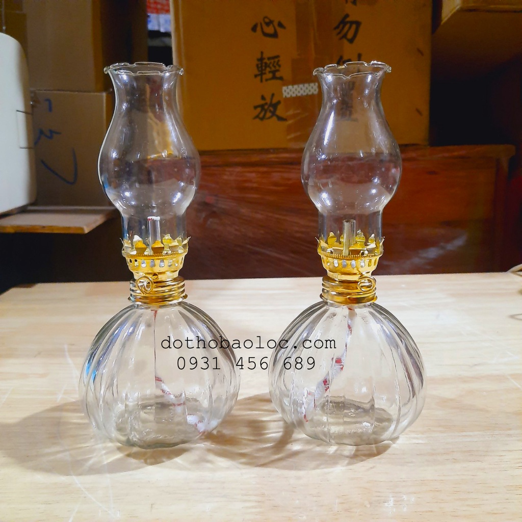 Đèn dầu chân thủy tinh tròn cao 18cm
