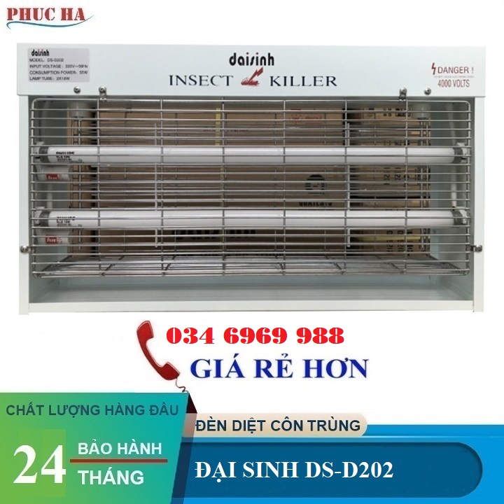 Đèn diệt côn trùng keo dính DS-D152GIChất liệu: Inox 304 (chống gỉ)Phạm vi hiệu quả: 75 m2Điệp áp: 220V - 50HzBóng đèn: Philip 15W x 2Bước sóng bóng đèn : 350 NanometerKeo dính (cm) : 46 x 30 (Cận MSDS)Kích thước: 51 x 14 x 35 (cm)Khối lượng: 4 kgsXuất xứ: Đại Sinh - VNBảo hành miễn phí 24 thángGIAO HÀNG SIÊU TỐC TOÀN QUỐCThu hút ruồi, muỗi, côn trùng bay sử dụng đèn UV và keo giấyKhông gây tiếng ồn, không mùi, không ô nhiễm, thân thiện với môi trườngThiết kế nhỏ gọn, thu hút côn trùng từ bên ngoàiMiếng keo dán không bị hỏng bởi côn trùng , phù hợp với tiêu chuẩn HACCPSử dụng rộng rãi: Nhà hàng, bệnh viện, trường học, quán ăn cao cấp Đảm bảo Chất lượng và Hiệu quả, có linh kiện thay thế. An toàn tuyệt đối cho con người.CÔNG TY TNHH QUỐC TẾ PHÚC HÀTrụ sở: 84/2/8 Đường số 13, P. Linh Xuân, Q. Thủ Đức TP. HCMChi nhánh: Thôn Đồng Ái, xã Quang Sơn, huyện Lập Thạch, tỉnh Vĩnh PhúcGiá sản phẩm trên Tiki đã bao gồm thuế theo luật hiện hành. Bên cạnh đó, tuỳ vào loại sản phẩm, hình thức và địa chỉ giao hàng mà có thể phát sinh thêm chi phí khác như phí vận chuyển, phụ phí hàng cồng kềnh, thuế nhập khẩu (đối với đơn hàng giao từ nước ngoài có giá trị trên 1 triệu đồng).....Sản phẩm này là tài sản cá nhân được bán bởi Nhà Bán Hàng Cá Nhân và không thuộc đối tượng phải chịu thuế GTGT. Do đó hoá đơn VAT không được cung cấp trong trường hợp này.