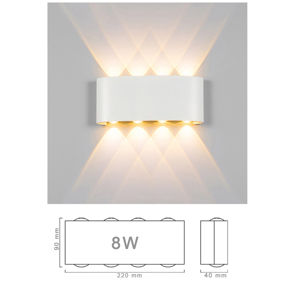Đèn gắn tường ngoài trời, trong nhà hắt sáng 2 đầu 2,4,6,8 tia thân cong tròn màu trắng VNT-618-19/Đen Mã sản phẩm: VNT-618-19/ Trắng, VNT-619-19/Trắng, VNT-620-19/Trắng, VNT-624-19/Trắng Công suất: 4w, 8w, 12w, 16w Ánh sáng: 3500K (Màu vàng ấm) Kích thước: 2 Tia: L8