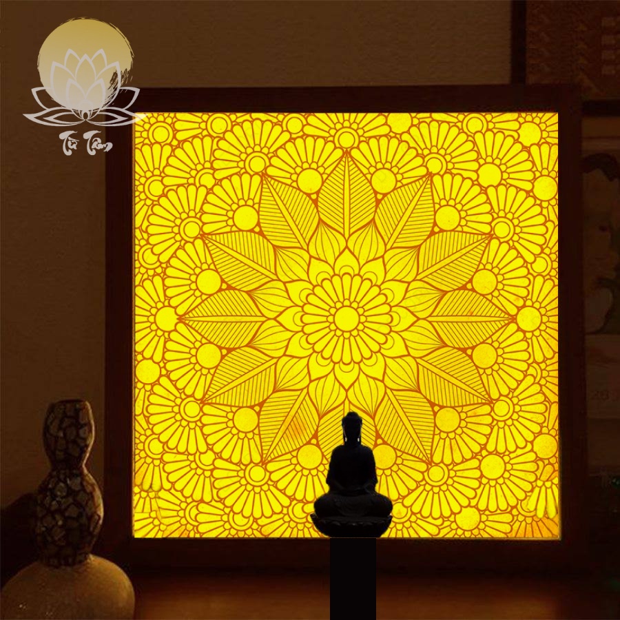 Đèn Hào Quang Phật TỪ TÂM, Tranh Trúc Chỉ VUÔNG, Hào Quang LED, Trang Trí Bàn Thờ, Đèn Thờ Phật,Tranh SEN TỎA TUTAM-TC24