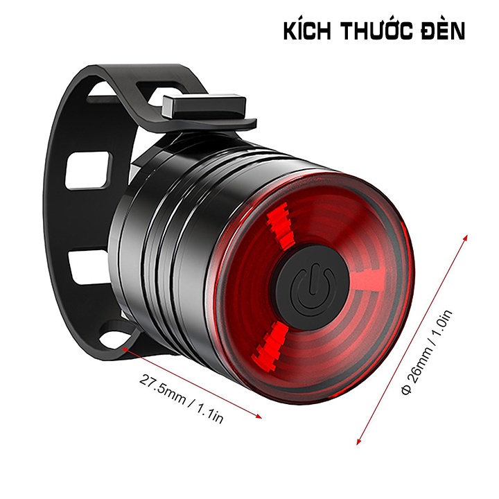 Đèn hậu Led sau xe đạp Ruby tròn thể thao chống nước cảnh báo an toàn gắn cốt yên vỏ nhôm siêu bền