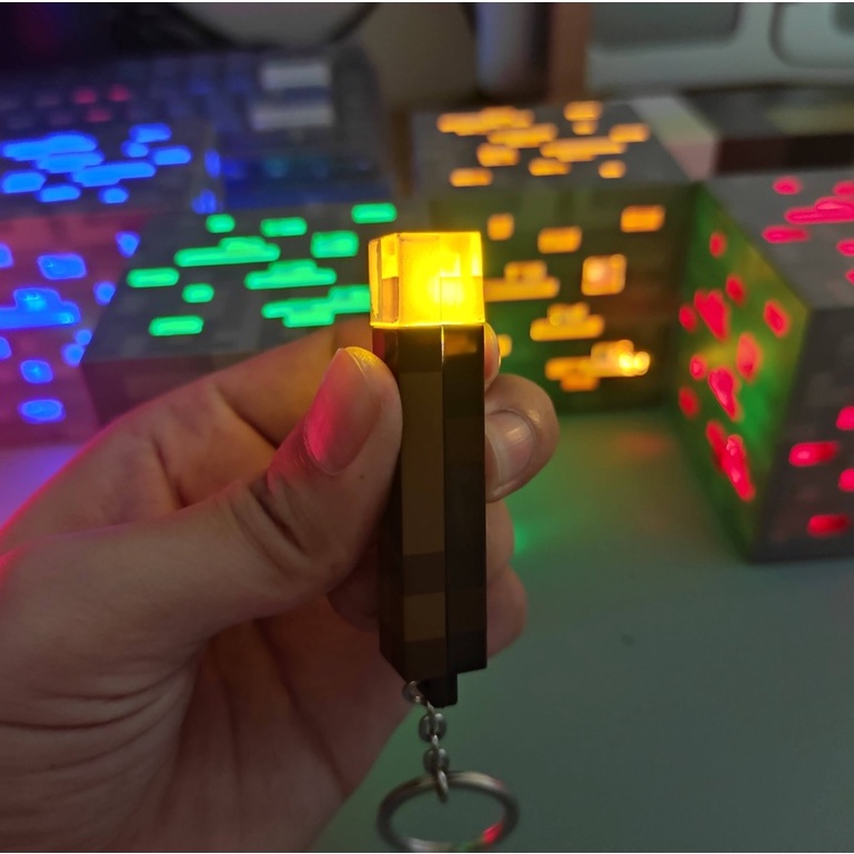 Mô phỏng lại những khối quặng, vật phẩm trong game Minecraft. Dùng làm đèn ngủ, đèn trang trí trong nhà. Mô hình đèn Minecraft có: - Đèn đuốc Minecraft kèm sạc - Đèn khối quặng Minecraft kèm sạc các màu: Vàng, Xanh nước biển, Xanh lá, Đỏ. - Móc chìa khoá đèn pin Min