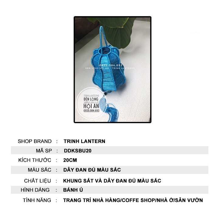 Đèn lồng Hội An khung sắt đan dây đủ màu chống nước treo ngoài trời trang trí là sản phẩm được sản xuất độc quyền của thương hiệu đèn lồng Hội An 𝐓𝐑𝐈𝐍𝐇 𝐋𝐀𝐍𝐓𝐄𝐑𝐍. Đèn lồng Hội An khung sắt đan dây đủ màu được làm từ những khung sắt chắc chắn uốn lượn dưới bàn tay khéo của các nghệ nhân và được bện từ những sợi dây đủ màu sắc. Đèn lồng hội an là sản phẩm thủ công mỹ nghệ truyền thống của người dân phố Hội. Từ xưa, chiếc đèn lồng treo ngoài trời đã được sử dụng rất nhiều trong việc trang trí và sử dụng trong ngôi nhà ở phố cổ Hội An. Ngày nay, chiếc đèn lồng không chỉ dừng lại là một sản phẩm địa phương, lồng đèn hội an ngày này còn là món quà ý nghĩa và là sản phẩm trang trí được sử dụng rất nhiều trong các dịp lễ hội trong nước và đặc biệt hơn là được xuất khẩu ra các nước khác trên thế giới. Gần đây nhất, đèn lồng hội an được công nhận là Thương hiệu sản phẩm nối tiếng trên Thế Giới năm 2013. Đây không chỉ là niềm tự hào riêng của người Hội An mà còn là niềm tự hào của cả những người Việt yêu sản phẩm truyền thống Việt. Trinh Lantern là một trong những xưởng sản xuất đèn lồng Hội An. Hiện nay đèn lồng Cô Trinh đang nỗ lực làm ra và phân phối những chiếc lồng đèn đẹp nhất và chất lượng nhất với mong muốn đưa sản phẩm đèn lồng Hội An đi xa hơn cũng đưa một sản phẩm truyền thống Việt vươn cao hơn. Đèn lồng Hội An khung sắt đan dây đủ màu chống nước treo ngoài trời trang trí ♥️ Kích thước: 20cm. Đèn cũng có các kích thước 10cm, 30cm. Khách đặt size khác, inbox xưởng nha. ♥️ Hình dáng: Tròn, Tỏi, Bánh Ú, Tỏi Ngược, Đĩa Bay, Trụ, Hồ Lô, Trái Tim. ♥️ Chất liệu: khung sắt và dây đan nhiều màu sắc cao cấp ♥️ Màu sắc: CAM, HỒNG CÁNH SEN, ĐỎ ĐÔ, ĐỎ, HỒNG PHẤN, TÍM HOA CÀ, TÍM THAN, TRẮNG, VÀNG, XANH CÔNG, XANH DƯƠNG, XANH LÁ, XANH MỰC, XANH NGỌC, XANH NHẠT . Một điểm cần chú ý là đèn lồng Hội An khung sắt dây đan kích thước được tính là chiều cao của đèn, đơn vị cm. Ngoài những mẫu đèn như ở trên, chúng tôi còn nhận thiết kế theo mẫu khung và loại dây đan theo yêu cầu của Quý khách. Lựa chọn cách bảo quản Lồng đèn đúng cách sẽ giúp tuổi thọ đèn được nâng cao - Vệ sinh đèn lồng bằng cách dùng cọ mềm để quét bụi. - Khi không sử dụng đèn có thể dùng bao bảo quản đèn lại dễ dàng. - Đối với đèn treo ngoài trời, Quý khách vui lòng sử dụng bóng và đui đèn chuyên dụng. #denlonghoian #longden #longdentrungthu #denkeoquan #longdentrungthuchobe #longdentrangtri #longdengiay #denlong #denlongtrungthu #denlongtrangtri #longdenhoian #denlongdo #denlongtre #denlongchobe #longdentrangtritet #denlonggiay #denlongtreongoaitroi #denlongchobe