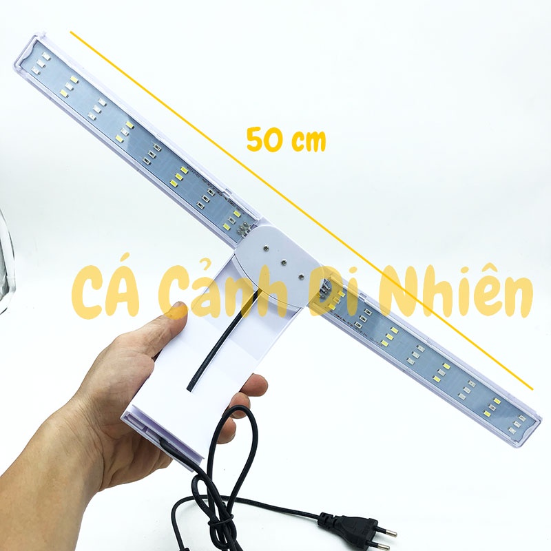 Đèn LED chữ Y màu trắng ĐỔI MÀU kẹp thành hồ cá thủy sinh cho bể 40-50 cm Y250 là loại vật dụng không chỉ giúp trang trí bể cá hồ cá cảnh thủy sinh của bạn có không gian đẹp hơn mà còn có tác dụng cung cấp ánh sáng và có vai trò quan trọng trong quá trình sinh trưởng của sinh vật và các loài thủy sinh... Xuất Xứ: Trung Quốc Kích thước: size dành cho hồ thủy sinh mini có chiều dài bể 40- 50 cm. Đặc điểm: đèn có thể xoay 90 độ tạo dáng chữ T hoặc chữ Y Thông số: + Chiều dài MÁNG: 35 cm + Chiều cao: 12 cm + Rộng: 7 cm + Đèn Led có 4 Dãy với tổng cộng 48 LED + Màu sắc: TRẮNG (dành cho hồ thủy sinh) hoặc đổi màu 3 chế độ: nhấn nhẹ công tắc để đổi màu + Kiểu dáng: dạng kẹp thành hồ cá có khe kẹp 5mm. Kích thước hộp sản phẩm: 39 x 10 x 7 cm. Trọng lượng sản phẩm: 220 gram. Trọng lượng đóng gói: 600 gram