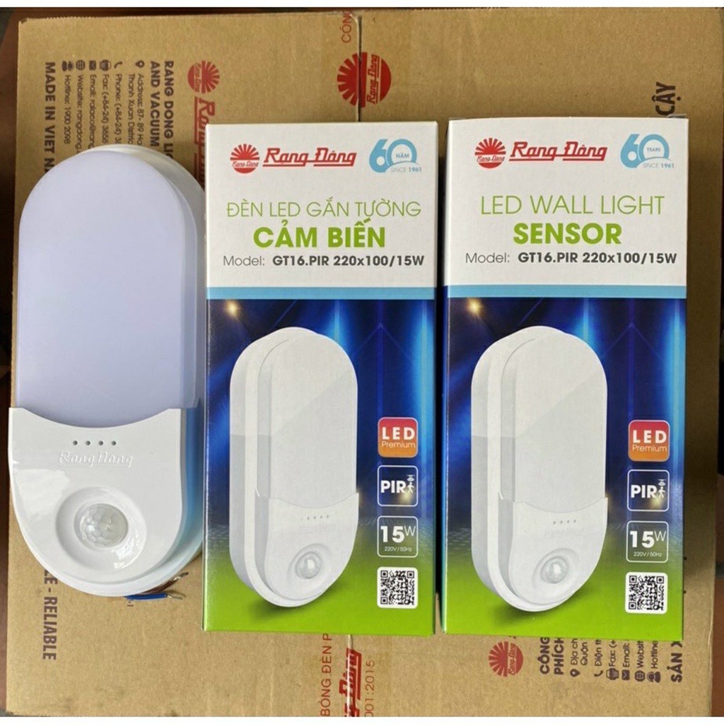 Đèn LED Gắn Tường Cảm Biến Tự Động Phát Sáng GT16.PIR 220x100/15W 6500K, GT16.PIR 180/15W Chính Hãng Rạng Đông