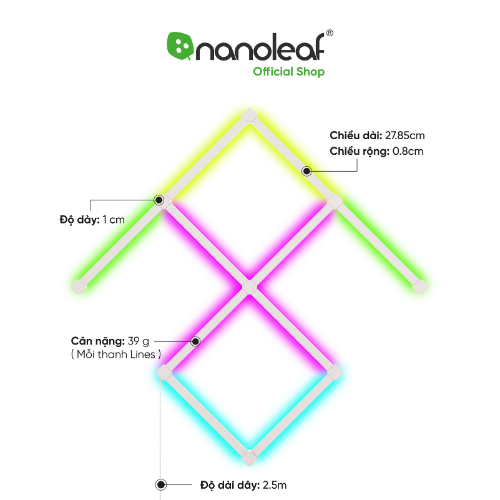 Nanoleaf đã thành công trong việc mang đến trải nghiệm ánh sáng với dòng Essentials và dòng Shapes, Elements và hiện nay Nanoleaf đã cho ra mắt một dòng mới mang lại sự sang trọng độc đáo với những thanh đèn backlit thông minh cực kỳ ấn tượng mang lại cho không gian làm việc hay gaming các thiết kế sáng tạo của riêng bạn. Điều làm dòng Nanoleaf Lines khác biệt với các dòng Nanoleaf Shapes đó là khả năng hiển thị 2 màu trên cùng 1 thanh đèn. Dòng Nanoleaf Lines gồm 2 dòng là Hexagon ( Lục giác ) và Squared ( Vuông ) với các khớp nối linh hoạt dễ dàng tháo lắp, tạo thành nhiều hình dạng khác nhau. Đèn LED RGB lắp ghép thông minh Nanoleaf Lines Squared 10 thanh đèn là bộ khởi động bao gồm những thanh đèn và các phụ kiện giúp bạn sáng tạo thiết kế của riêng mình. TÍNH NĂNG NỔI BẬT - Sáng tạo thiết kế riêng của bạn bằng cách sắp xếp các thanh đèn theo bất kỳ bố cục nào bạn muốn. Tự do ghi dấu ấn cá nhân nhưng không đánh mất sự sang trọng của sản phẩm. - Bộ đèn thông minh Nanoleaf Lines là sự kết hợp hoàn hảo giữa nghệ thuật và công nghệ. Cho bạn cảm giác như được ngắm sao trên trời trong căn phòng của bạn. - Kiểu dáng hình học cùng chuyển động màu sắc rực rỡ sẽ thổi hồn vào không gian của bạn. - Phản chiếu màu sắc từ màn hình của bạn phù hợp cho mọi kiệt tác điện ảnh cho đến hoạt động giải trí hàng ngày. - Thiết lập ánh sáng thư giãn giúp bạn hòa mình vào cuộc sống. - Lắp đặt đơn giản, dễ dàng với băng keo hai mặt đi kèm. - với các tính năng đặc biệt như Screen Mirror, Music Rhythm giúp nâng tầm trải nghiệm ánh sáng đặc biệt đối với các bạn Gaming sẽ giúp mang lại thêm sự độc đáo và tăng tính trải nghiệm THÔNG TIN SẢN PHẨM - Khả năng tương thích: Ứng dụng Apple HomeKit, Amazon Alexa, Google Assistant, IFTTT, bảng điều khiển vật lý, Nanoleaf Remote, Razer Synapse, SmartThings, Homey. - Khả năng điều chỉnh độ sáng thông qua ứng dụng Nanoleaf, Giọng nói và Cảm ứng. Có thể điều khiển bằng cử chỉ âm thanh như vỗ tay, gõ mặt bàn, - Lines hoạt động như một bộ định tuyến biên Thread - Kết nối Wifi (2.4 GHz b/g/n) - Nhiệt độ màu: 1200K - 6500K - Cấu hình kênh màu: RGBW - Tối đa số màu: Hơn 16 triệu màu - Vùng màu: vùng 2 màu trên mỗi đèn - Số Lines tối đa cho mỗi Bộ cấp nguồn 42W: 18 Lines BỘ SẢN PHẨM BAO GỒM 1 Bộ khởi động - 4x Thanh đèn - 4x Đầu nối và nắp - 1x Nắp điều khiển - 5x Miếng cố định kèm bang keo hai mặt - 1x Bộ xử lý và đầu nối nguồn - 1x Bộ cấp nguồn (100-240V) - 1x Sổ tay hướng dẫn 2 Bộ mở rộng - 3x Thanh đèn - 3x Đầu nối và nắp - 3x Băng keo hai mặt KÍCH THƯỚC VÀ THÔNG SỐ - Kích thước thanh đèn: 27,85 x 2 x 0,8 cm - Kích thước đầu nối: 2,16 x 3 x 3 cm - Trọng lượng thanh đèn: 39 g - Trọng lượng đầu nối: 12 g - Quang thông: 20 lumen - Công suất thanh đèn: 2 W - Công suất bộ cấp nguồn: 42 W THÔNG TIN THƯƠNG HIỆU Nanoleaf là công ty tiên phong trong lĩnh vực nhà thông minh hiện đại và mở đường cho lĩnh vực này bằng cách không ngừng nỗ lực định nghĩa lại không gian. Để làm được điều này, chúng tôi tuân thủ một quy tắc đơn giản, đó là không làm ra những thứ đã có trên thị trường, trừ khi chúng tôi có thể làm tốt hơn. Bằng cách “suy nghĩ lại những điều có thể” và không ngừng cải tiến với công nghệ và thiết kế của mình, tại Nanoleaf, chúng tôi có thể tạo ra những sản phẩm chưa từng có và khám phá tiềm năng thực sự của ngôi nhà thông minh.Giá sản phẩm trên Tiki đã bao gồm thuế theo luật hiện hành. Bên cạnh đó, tuỳ vào loại sản phẩm, hình thức và địa chỉ giao hàng mà có thể phát sinh thêm chi phí khác như phí vận chuyển, phụ phí hàng cồng kềnh, thuế nhập khẩu (đối với đơn hàng giao từ nước ngoài có giá trị trên 1 triệu đồng).....