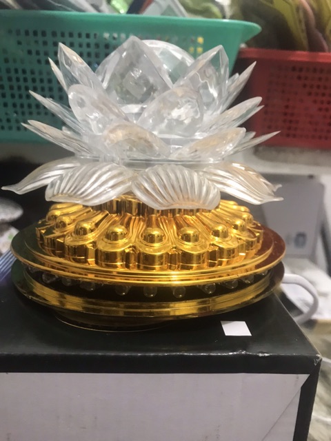 Đèn Led trang trí cầu xoay hình hoa sen đế vàng