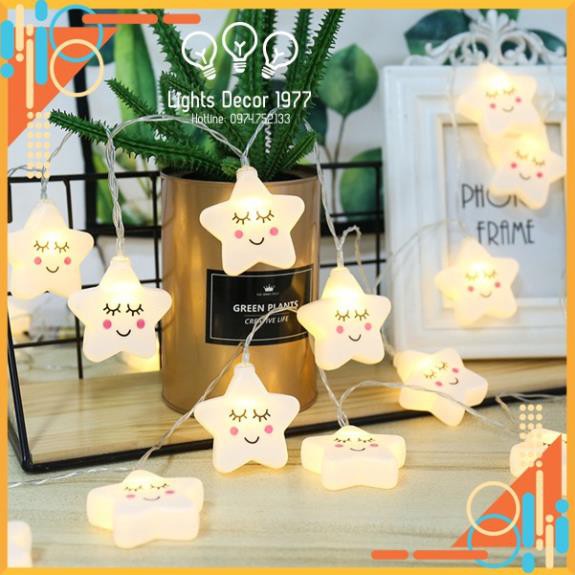 🌩️ Chuỗi bóng đèn Led trang trí họa tiết mặt cười ngôi sao, mây. Phù hợp trang trí trong nhà nội thất, phòng ngủ 🌩️ Kích thước sản phẩm: 1,5m - 3m 🌩️ Trọng lượng sản phẩm: khoảng 100 gram 🌩️ Bao bì sản phẩm: hộp 🌩️ Phân loại: 1.5gạo 10đèn điện ngôi sao 4 màu, 4 màu sắ