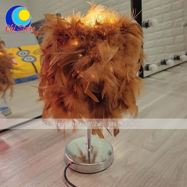 Đèn Ngủ Lông Vũ Để Bàn Lông Vũ Chân Inox Cực Đẹp, Sang Chảnh