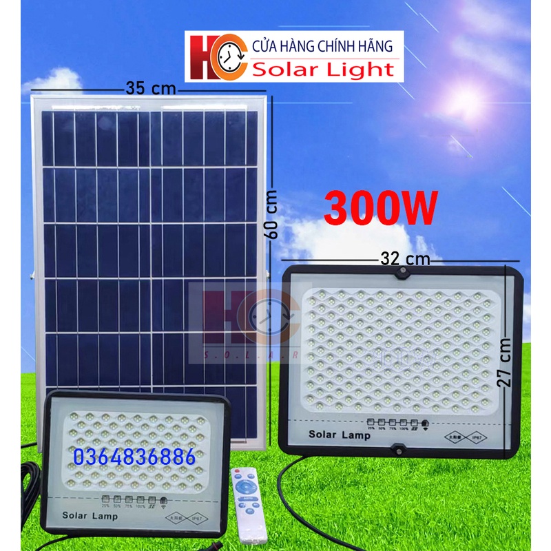 Đèn pha năng lượng mặt trời HC SOLAR LINGHT 300W – Chống chói mắt, Vỏ nhôm, Tấm pin rời, Ánh sáng trắng, Kiểu Led mới