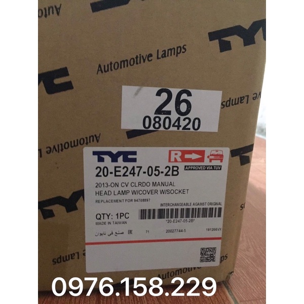 ĐÈN PHA XE CHEVROLET COLORADO- KHÔNG LED Giá: 1800k/ chiếc Mã phụ tùng: 20-E246-052B Thương hiệu sản xuất: TYC Xuất xứ sản phẩm: Đài Loan Liên hệ trước khi đặt hàng để được tư vấn & hỗ trợ một cách tốt nhất. Call& zalo: 0976.158.299 - Bảo hành sản phẩm mới 100% - Sản phẩm được bảo hành lắp lên - Bảo hành đúng xuất xứ sản phẩm - Đổi trả 7 ngày còn nguyên vẹn