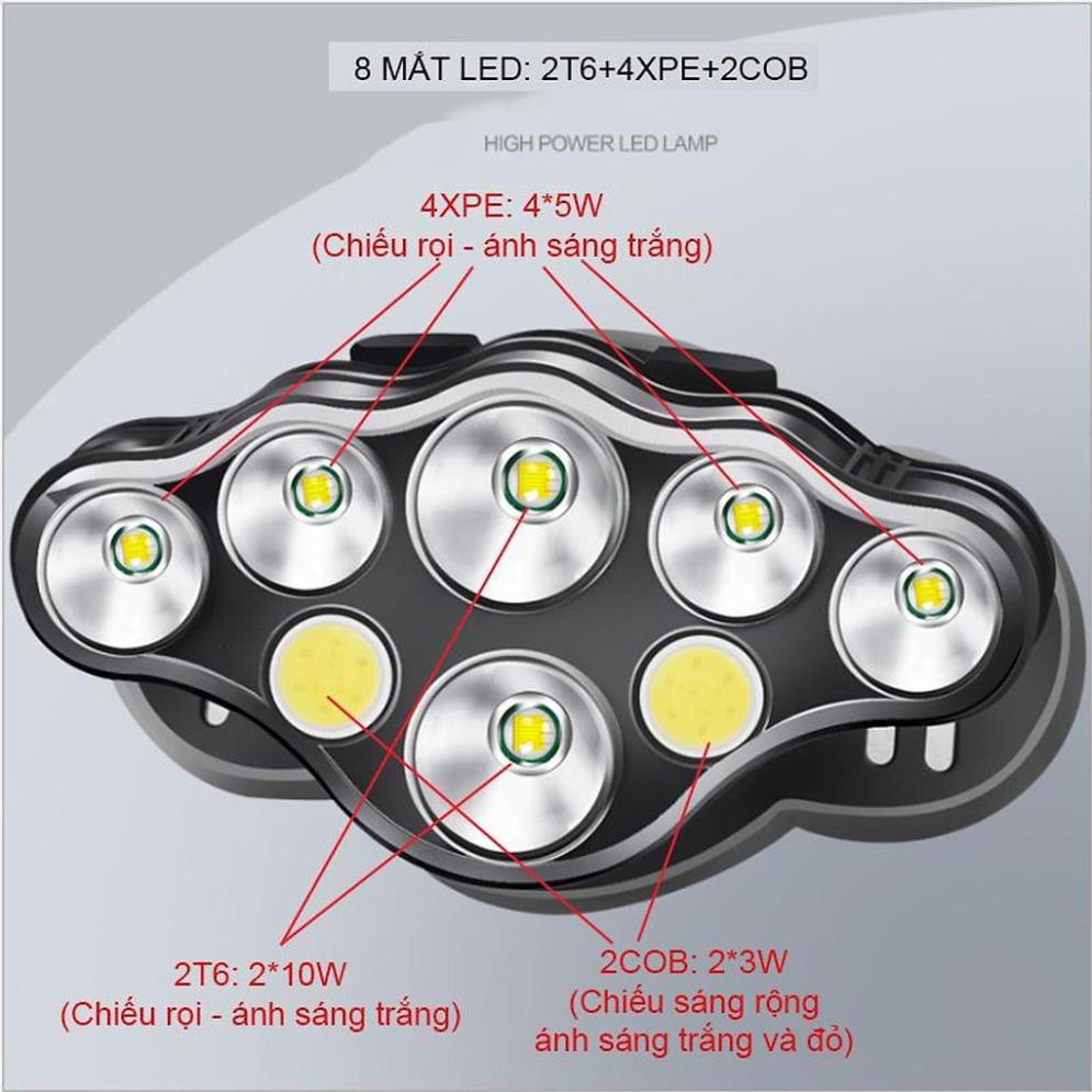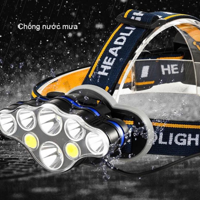 Đèn Pin Đội Đầu 8 Bóng Led Siêu Sáng✔️Bảo Hành 3 Năm✔️Tặng Kèm 2 Pin Kèm Bộ Sạc Siêu Tiện Dụng, Chống Nước IP68