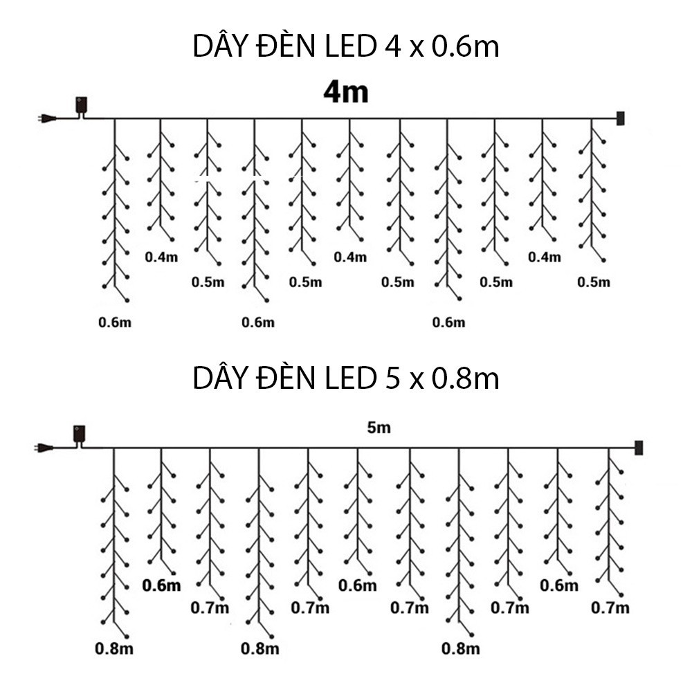 Đèn Rèm Thả Mành, Đèn Rèm Trang Trí 12mx0,6m Gồm 24 Sợi