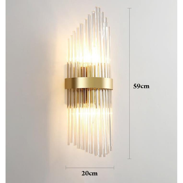 Đèn tường pha lê là loại đèn được thiết kế rất tinh xảo với sự kết nối hài hoà giữa các thanh pha lê với nhau và sự phản chiếu ánh sáng của đèn led những thanh pha lê tạo nên nhiều màu sắc khác nhau tạo nên nhiều hiệu ứng ánh sáng khác nhau làm cho căn phòng của bạn thêm lung linh, lấp lánh và huyền ảo, lãng mạn hơn. Thông số sản phẩm: Màu sắc: vàng, pha lê Chất liệu: inox , pha lê Loại đèn sử dụng: Led E14 Nguồn điện: 220V Sản phẩm được cấu tạo bằng chất liệu pha lê và hợp kim không gỉ vì vật mà tuổi thọ của đèn rất cao. 1 bộ đèn bao gồm: khung inox, thanh thủy tinh pha lê, phụ kiện đi kèm. kÍCH THƯỚC SẢN PHẨM: 20x59 (cm) Đèn tường hiện đại sử dụng đèn chiếu sáng bằng bóng đèn led bằng chip led Samsung nên có độ sáng bền màu và hiệu suất ánh sáng cao, khi chiếu sáng không phát ra các tia bức xạ có hại và không nhấp nháy làm ảnh hưởng đến mắt người sử dụng, đồng thời sử dụng bóng đèn led giúp tiết kiệm được lượng điện năng tiêu thụ, tiết kiệm được chi phí chi trả tiền điện hàng tháng cho gia đình bạn. Đèn tường pha lê được sử dụng để lắp đặt phù hợp để trang trí tại phòng khách, phòng ngủ, hội nghị tiệc cưới, để tạo thêm vẻ đẹp sang trọng và đẳng cấp. Đèn tường pha lê là sự lựa chọn hoàn hảo cho không gian nội thất nhà bạn, tạo điểm nhấn bởi sự lung linh và huyền ảo của đèn làm hút hồn, mê hoặc những người khách khi đến chơi. Sản phẩm được đóng gói cần thận trong hộp xốp, khách hàng có thể yên tâm trong quá trình vận chuyển.