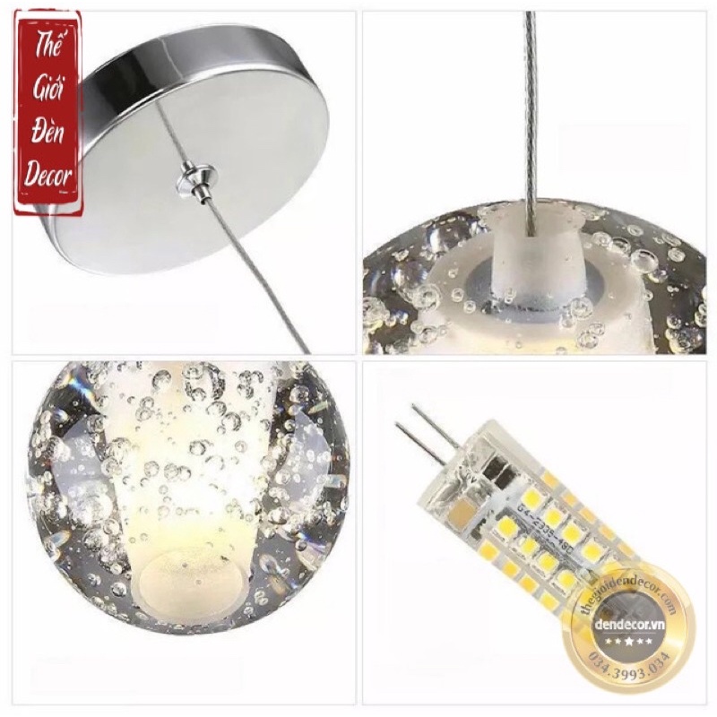 ĐÈN THẢ GIỌT NƯỚC PHA LÊ - ĐÈN THẢ THÔNG TẦNG DÂY DÀI 4m ( ĐÃ BAO GỒM BÓNG LED G4 Ánh sáng vàng trung tính) THÔNG SỐ KĨ THUẬT: Giá sản phẩm bao gồm 1 bộ 1 quả pha lê Bảo hành: 6 Tháng Kích thước: 10cm Cân nặng: 1,5kg/ quả pha lê Dây thả dài 4m có thể điều chỉnh ngắn dài thả phòng ngủ hoặc thông tầng Đế ốp trần 10cm Bóng đèn led ánh sáng vàng trung tính Bên cạnh những chiếc đèn thông tầng đồ sộ và cầu kỳ, những mẫu đèn thả hiện đại luôn ghi điểm và tạo ấn tượng cho khách hàng với những thiết kế thực sự nổi bật. Để làm rõ điều trên, mời bạn khám phá mẫu đèn trang trí Bocci- một mẫu đèn thả hiện đại hot nhất hiện nay. Bộ đèn thả trang trí Bocci là thiết kế hoàn hảo và độc đáo nhất, mang lại sự sang trọng và tính thẩm mỹ cho không gian, chắc chắn rằng đây là sự lựa chọn hoàn hảo nhất mà bạn không thể bỏ qua. Phong cách: Thiết kế theo phong cách châu Âu Chất liệu: Pha lê thủy tinh nguyên khối. Ứng dụng: Trang trí cho mọi không gian, tạo điểm nhấn đặc biệt. ƯU ĐIỂM: 1. Hệ thống đèn led được tích hợp phía bên trong quả cầu pha lê tạo ánh sáng tỏa ra dịu nhẹ, mát mắt.Rất được ưa chuộng để thả thông tầng hoặc thả đơn Ánh sáng từ các loại đèn trang trí đóng vai trò quan trọng trong trang trí nội thất. Hệ thống chiếu sáng lung linh sẽ phá vỡ những không gian đơn điệu làm cho không gian của bạn trở nên mới mẻ và ấm cúng hơn bao giờ hết Ngày nay những chiếc đèn treo ngày càng xuất hiện phổ biến hơn trong thiết kế nội thất. Tại quán ăn, quán cafe, nhà hàng, khách sạn và đặc biệt là những khoảng cầu thang, thì đèn thả thông tầng là sự lựa chọn hoàn hảo của các nhà thiết kế. Những sợi dây cáp siêu bền kết hợp với những viên pha lê và ánh đèn làm cả không gian bừng sáng. Cảm tưởng cho người xem như đang thấy những giọt nước tinh khiết buổi sớm.
