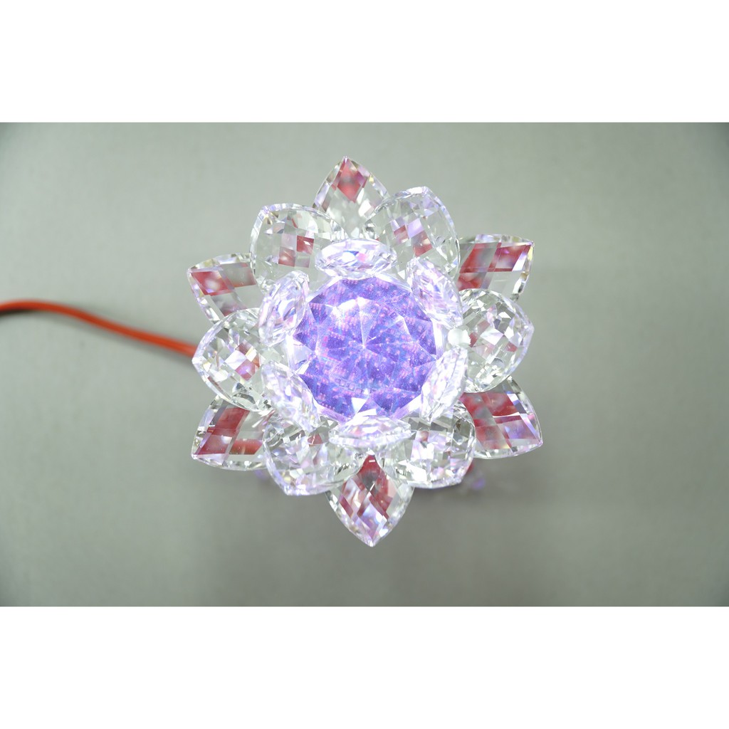Đèn thờ cúng điện pha lê nguyên khối hoa sen đèn thờ led đổi màu trụ vuông tầng cao cấp - Cao 20cm